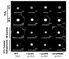 1. 베타-케토아디페이트 경로 효소 활성을 갖는 서열번호 1 내지 8의 폴리펩타이드를 암호화하는 폴리뉴클레오타이드 서열 중 어느 하나 이상을 포함하는 핵산 분자; 또는 상기 폴리뉴클레오타이드의 상보적인 염기서열을 포함하는 핵산 분자를 포함하는 재조합 벡터. |