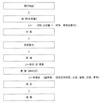 | 대표청구항 | 1. 콩을 수돗물에 세척 후 20~25℃에서 전체중량대비 3% 소금물과 97% 해양 심층수을 혼합한 물에 8시간 수침 후 자연 탈수하는 수침단계, 상기 수침단계를 거친 콩을 일반 믹서기로 10분간 파쇄하는 파쇄단계, 상기 파쇄단계를 거친 콩에 문어 내장에서 분리한 균주인 바실러스 플렉서스를 접종하되 파쇄콩을 1~5 : 95~99(V/W)의 비율로 접종한 후 혼합하여 균주접종 파쇄콩을 만드는 균주접종단계, 상기 균주접종단계를 거친 균주접종 파쇄 콩을 30~35℃에서 48시간 동안 처리 한 균주접종 파쇄콩을 주원료로 이용하여 통상의 콩고기 제조방법으로 콩고기를 만드는 단계로 구성되는 것을 특징으로 하는 문어내장에서 분리한 단백질 분해 균주를 이용한 콩고기 제조 방법 | ||