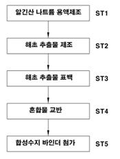 1베이스 바인더, 물, 무기안료, 광물성 소포제, 무기분산제, 증점제, 무기항균제, 동결안정제, 도막형성조제, 방부재를 포함하는 조성을 이루는 페인트 조성물에 있어서, 상기 베이스 바인더는, 알긴산나트륨(Sodium Alginate)용액 5~35중량%와, 합성수지바인더 20~70중량%와, 해초추출물 20~40중량%와, 표백제인 차아황산나트륨(Na2S2O4) 0.2~2.0중량%와, 보존료인 메틸파라벤(C8H8O3) 0.4~3.0중량%와, 광물계 소포제(CPA-1000) 0.3~2.0 중량%의 조성을 이루는 것을 특징으로 하는 해초추출물을 기반으로 하는 친환경 해초페인트 조성물. |