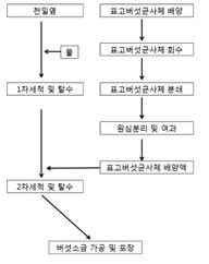 1표고버섯 균사체 종균을 멸균된 PDB (potato dextrose broth) 액체 배지에 접종하여 25℃에서 20 내지 30 rpm으로 20 내지 45일간 배양하는 단계; 상기 배양된 균사체를 회수한 후, 초음파 분쇄기로 분쇄하는 단계; 상기 분쇄한 균사체를 원래의 배양액에 다시 첨가한 후, 원심분리 및 여과를 통해 균사체 찌꺼기를 제거하여 순수 배양액을 얻는 단계; 소금을 물로 1차 세척 및 탈수한 후, 상기 순수 배양액을 10 bar의 고압분무기로 1차 세척 및 탈수된 소금에 분사하는 2차 세척 및 3,000 내지 5,000 rpm으로 3 내지 5분간 원심분리 하여 탈수하는 단계; 및 상기 2차 세척 및 탈수된 소금을 90 내지 95℃에서 30분간 구운 후, 50 내지 100 메쉬의 입도로 분쇄하는 단계를 포함하는 항산화 또는 항암 효과가 있는 버섯소금의 제조 방법. |