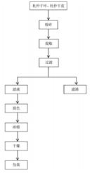본 발명이 일종 두충 정제 가루 및 그 제조 방법을 공개하고, 그 두충 정제 가루가 이하의 성분을 포함한다: 총괄하여 사탕 함량 ≥15%, 클로로겐 산 함량 ≥5%, 늘 플레이본스 함량 ≥15%, Geniposidic acid std. 함량 ≥1.8%, Aucubin 함량 ≥0.8%, 수분 ≤6.0%, 및 B,Ca,Cu,Mg,Mn,P,Se,Zn,Na,K,Fe 등 미량 원소를 포함한다. 본 발명은 두충이 두충 껍질 고효율 추출 두충 정제 가루를 화합 시키는 것을 이용하고, 막기술로 분리하고, 농축, 탈색 등 공정을 도입하고, 시간을 절약하여 또 제품 품질과 수익률을 향상시킬 수 있는, 공정 온도 낮은 상태에서 추출하여, 고온 가열로 인한 유효 성분에 대한 파괴를 피하였다. 이 외에, 본 발명이 추출해 내는 두충 정제 가루를 통해서는 물에 용해되지 않는다. 두충 정제 가루는 천연 보건품 제제에 속하고, 안전하여 무독하여, 의약, 보건품 및 식품 항산화제 등 업계에 적용될 수 있다. 두충 정제 가루를 추출한 후 추출물 잔재에서 계속 구타페르카를 추출할 수 있고, 효과적으로 두충을 고가치화하여 이용함으로써 경제적 효과를 향상시켰다. |
